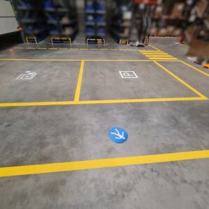 • Wymalowanie oznaczeń „parkingu i ładowania wózków”, w tym czytelne piktogramy dostosowane do potrzeb zakładu.