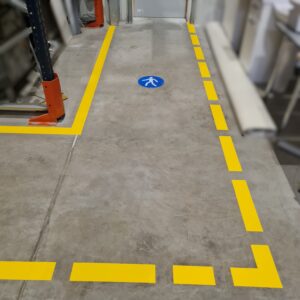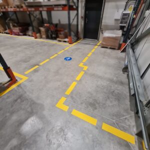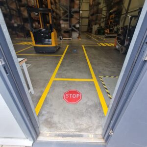 Realizacja została wykonana z pełną dbałością o bezpieczeństwo, trwałość i wizualną przejrzystość oznakowania, co znacząco poprawiło organizację ruchu wewnętrznego w zakładzie.